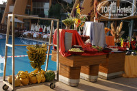 Питание тоже понравилось - особенно всегда свежие овощи, зелень, фрукты, потрясающие арбузы-дыни. А в остальном - всегда можно найти на свой вкус, много гарниров, мясо, рыба, овощи тушеные, маринады и пр... Много десертов на обед-ужин. На ужин - гриль, жаркое около бассейна, мороженое, пончики и прочие радости)). Никакие взятые средства для желудка не пригодились))).