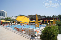 У основного бассейна отеля около ресторана мест почти нет уже с утра, но мы туда и не ходили - там была анимация, фитнес, вечером - дискотека. В основном мы отдыхали у детского бассейна - там было много семей с детьми. Свободные места находили всегда. Только на 3-й день решили пойти в аквапарк - потом было не уйти))) очень понравились горки, очередей нет). Для пляжных полотенец надо взять на ресепшн карточки (никаких денег не брали) и пройти к снек-бару - там кабинка с пунктом выдачи определенные часы работы), мокрые полотенца можно менять на сухие, при выезде сдаете карточки или полотенца.