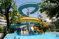 Территория достаточно большая (ну это личное мнение, кому-то она может и маленькая)), зеленая. Кроме того, по подземному переходу можно попасть в собственный парк отеля, где имеются детский клуб, дет.площадка, бассейн и мини-аквапарк в виде двух горок - катаются и детки и взрослые. Около бассейна - снек-бар с напитками, закусками (фри, нагетсы, лапша, мясо, рыба и пр...).