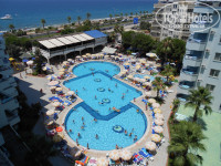 Территория отеля очень маленькая: большой бассейн и бассейн с горками. Кстати на горках надо быть осторожным, я там порвала купальник хотя вроде нигде не зацеплялась.