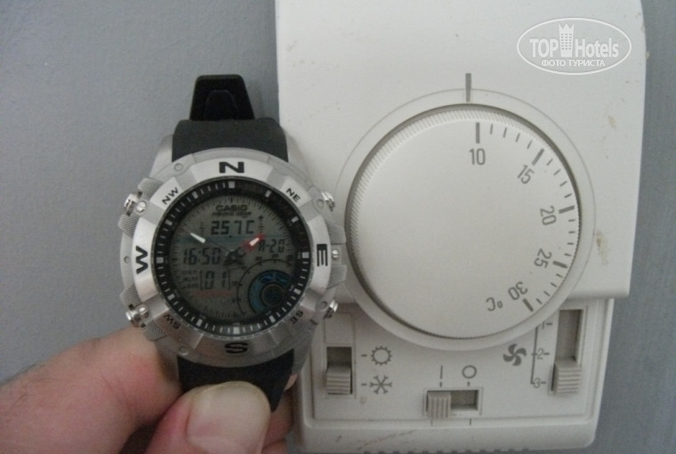 Отдыхали в данном отеле с 18 июля по 27 июля на втором этаже, окна номера выходили в сторону города. Приехали в отель около 8-30, нам сразу сказали, что заселение будет после 12-00, так и случилось, заселились в 12-15. При заселении обещали сразу же поставить дополнительную кровать (нас было трое, но кровать была в номере одна 2-х спальная), но время шло и ситуация не менялась, пришлось идти на «ресепшен» и вежливо, но настойчиво напомнить о доп. кровати. И, о чудо!, через 15 минут в номере было 3 полноценных спальных места. Но это я отношу к недочётам, а вот действительно к существенным недостаткам я бы отнёс работу кондиционеров в номере: работали они исправно, «климат-контроль» работал то же исправно, но с перерывами. Охлаждаться номер перестаёт с 12 до 16 часов днём и с 4-00 до 7-00 утром, когда самый сон! Просто дует тёплый воздух и температура в номере не опускается ниже +25:+26 градусов. (См. фото). Уборка была регулярной, каждый день. Бельё чистое, белоснежное, сухое, но не пересушенное. Причём уборка подстраивалась под нас.