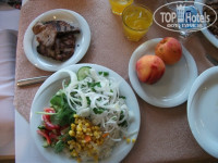 Ресторан типичен для турецких отелей, как и еда: в основном всё варено-тушеное; понравилась отварная курица, говядина, вечером готовят гриль из курицы или рыбы. Пару раз давали рыбу, похожую на сельдь, ну очень костлявая, есть не возможно, а так в основном скумбрия. Из фруктов- яблоки, апельсины, арбузы (каждый день), персики, абрикосы (2-3 раза в неделю).Можно уносить в номер, к этому персонал относится спокойно. Напитки: вино, пиво, водка, джин, виски, раки- всё местное (почему отель декларирует «ультра всё включено»- не понятно). Понравилось пиво и красное вино (остальное не пробовал). Мест в ресторане хватает всегда, грязную посуду убирают моментально. Чай только в заварниках, в пакетиках-нет. Много зелени.
