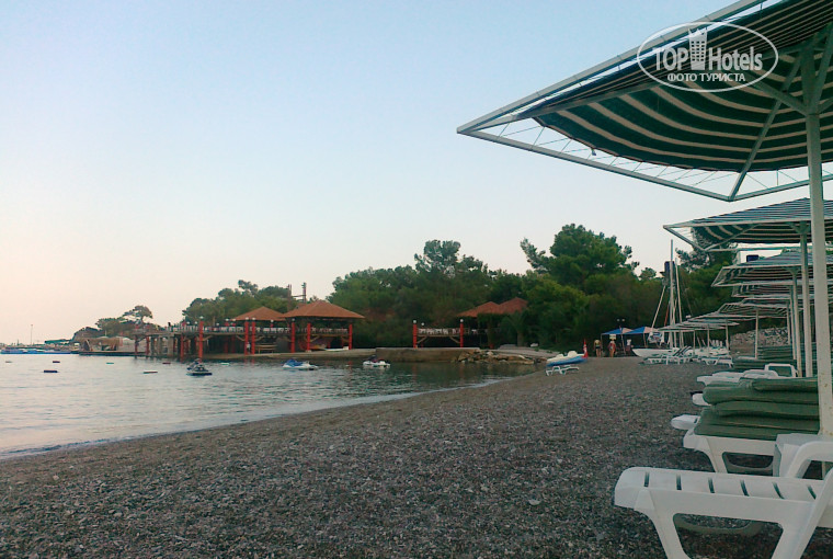 Пляж. Самый лучший пляж для безопасного входа и купания детей с левой от отеля стороны, напротив бич-румов, центральный в принципе тоже нормальный, но только если в спецобуви заходить. С пантонов и пирсов не любитель плавать и есть еще дальний пляж за скалой, но там всегда была хорошая волна и те же камни при входе.Так что выбор есть всех категорий любителей пляжного отдыха. С лежаками в октябре тоже проблем не испытывали. Один раз не хватило пляжных полотенец, вместо 4-х взяли 2-а.