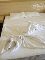 Весь персонал очень любит детей, пока малыши сидят за столом или идут по отелю, всегда кто-то подойдет, пошутит, поздоровается – это очень приятно. Нам повезло, и даже горничная досталась замечательная – всегда улыбалась, делала нам потрясающих лебедей, сердечки и лотосы из полотенец и простыней, приносила лепестки цветов для своих композиций. Если встречались в коридорах – всегда приветствовали друг друга. Постельное бельё меняли каждый день, оно прекрасно выстирано и выглажено, мы попросили, нам выдали дополнительные одеяла и пододеяльники, т.к. ночью спали с включенным кондиционером.