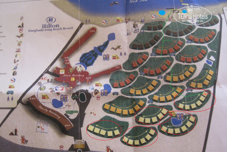 Отдыхал с 26.07 по 06.08.12.Соглашусь со всем ,что написано ниже.Добавлю заселили нас в № 1156 на фото будет видно,идти от туда до пляжа 1000 метров и плюс подьем от уровня моря 8 этаж(пять этажей подьем до бунгало и 3 зтаж самого бунгало),но зато - 1.5 кг и это +))).Проблемы с кондюками не только в ресторанах,но и в номерах,постоянно откллючался свет,но и даже когда он был у нас- свет, была большая проблема,проблема помыться после моря,воды хватало в лучшем слючае на одного,ну а в худшем ни кому.Про 1 этаж я молчу,они ходили мыться к друзьям.Про воду относится только к номерам стандарт они обведенены на фото красными овалами,остальные номера ТОЛЬКО за доплату 10 евро в день,исключение фемели рум-они за вознагрождение в 10 $