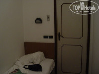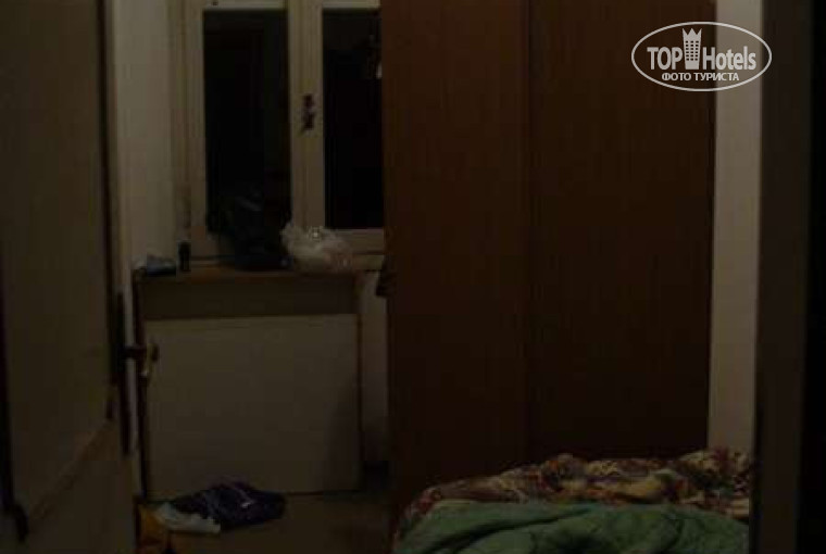 Номера очень маленькие, даш приделан к стене в туалете, зато есть биде :) Самое прикольно это раковина с 2-мя отдельными кранами для горячей и холодной воды :) Шкаф, который наверное еще при Виторио Эммануиле сделали. Когда-то в номерах были телевизоры, чему молчаливым свидетелем выступает обрезанный антенный кабель торчащий из стены :) фотки наверное не самые удачные, но в таком ограниченном пространстве лучше снять было не возможно :)