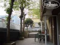 В отеле есть лифт. В холле стоит пара диванчиков и на улице несколько столиков на которых можно посидеть и распить купленные где-нить в супермаркете напитки. Можно в баре отеля купить напитки, но цены не адекватные. Отель расположен не далеко от железной дороги, причем видимо там какое-то место - поезда всегда сигналят. Но если вы приходите в отель вымотаный путешествием по этой замечательной стране то вы этого замечать не будете. :) Море максимум в 5 минутах ходьбы. Про него хочется сказать отдельно - песок приводит к тому что вода мутновата, но это всё мелочи. Море в районе Римини (в пределах города) идеально подойдет для маленьких детей, но мне показалось утомительным удти метров 50-100 в воде чтобы наконец-то я перестал доставать дна (рост 1.66) :) Владелец отеля - Марко забавная личность, но жмот полнейший. Когда не хочет оказать вам помощь сразу же напрочь забывает английский, да и просто информацию от него получить достаточно проблематично. Зажал телефон на рецепшн, когда нам надо было вызвать такси. Отель расположен на 21-й остановке, примерно в 1,5 часах пешей ходьбы от вокзала(исторического центра). На остановке находится клуб BlowUp, правда я в нем не побывал ну и вдоль всего побережья ресторанчики. Из того что нигде не встречал в инете - в районе 10-й остановки находится контора в которой с флешки можно переписать все фотки на диск "всего лишь" за 5 евро :) Но будте внимательны, их аппарат переписывает только картинки, видео на диск он не перепишет.