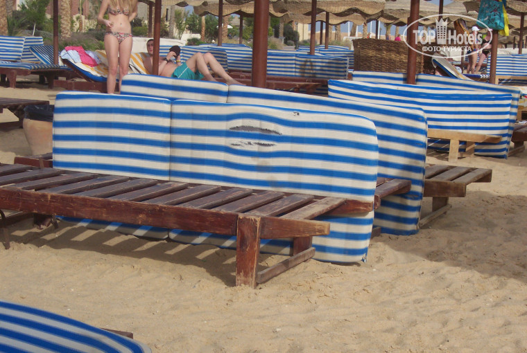 Пляж: заход в море крайне долгий и не надейтесь, что это хорошо для детей!!! Заходите вы по остаткам рифа: на нем и водоросли растут и всякие существа ползают. Можно коралки одеть, я даже детям одевала, но так долго идти по скользкому и живому рифу они не смогли, а купаться близко к берегу невозможно, т.к. слишком долгий заход!!! Пляж убирают плохо! Безусловно, служащие присутствуют на пляже с утра и до вечера и что-то убирают, но этого недостаточно. В песке очень много мусора. Лежаки деревянные (я таких никогда и нигде не видела, а видела я много отелей в разных странах), ОООООчень старые, Почти все переломаны. Матрасы им под стать.Я специально это сфотографировала и выложила, чтобы не быть голословной. Полотенца пляжные очень старые, вместо бело-желтых серые, но хоть ощущалось, что их стирают.