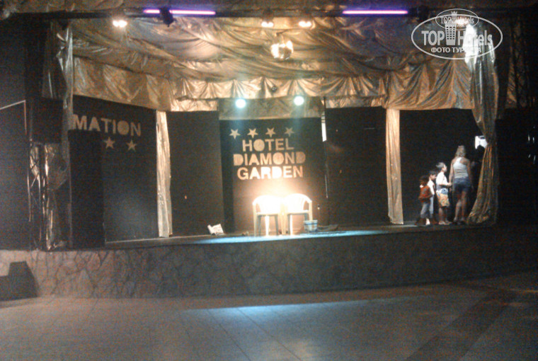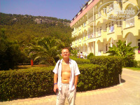 Территория отеля средняя по размеру (видел и больше), но достаточно зеленая, есть беседки с мягкими подушками, где мы вечером потягивали виски :)), бильярд, возле сцены у большого бассейна много столиков, где тоже можно посидеть. Персонал отеля говорит по-русски.Не заметил, как тут некоторые писали, что персонал и бармены отеля игнорируют обращения к ним русских - все в порядке очереди. Вообще, Турция в отношении к русским мне показалась гораздо приветливее, чем, например. Египет. Есть детский бассейн с горкой, но вода на горках включается на несколько часов в определенное время.