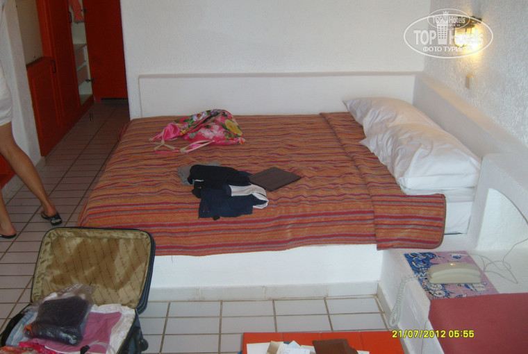 Сделав первый шаг из автобуса мы почувствовали , что отель такой же как и на фото - большое количество пальм везде цветут розы и другие цветы , везде все пахнет и благоухает. Зайдя на рецепшен первое, что бросилось в глаза - куча скандалящих туристов, которые заранее забронировали номер, а теперь их хотят переселить в другой отель (даже не из сети Aldemar!). Видно было , что люди готовы были биться до конца за свой отдых , но судя по равнодушному взгляду персонала никто их заселять не собирался, не смотря на то, что из одна девушка была даже беременна.На все вопросы неудавшихся туристов, персонал отвечал : "А что Я могу сделать?" или "Ничем немогу вам помочь" - почему - то именно эти фразы мне так сильно запомнились и потом периодически всплывали по ходу всего отдыха, оставляя неприятное впечатление. Вообщем их так и не заселили,т.к. я их в отеле не видел. Нам с моей девушкой к счастью повезло, благо, мы уже в июне начали бронирывать.