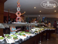 Питание в отеле хорошее,всегда была курица,мясо,рыба,множество разнообразных салатов, зелени и множество фруктов и сладкого!Из выпивки пиво Эфес,и делают различные коктейли, так же вино! Безалкогольного чай кофе из автоматов,соки(растворенные юпи) и вода!