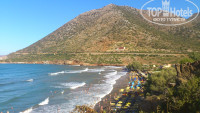 Пляж ухоженный, с темным вулканическим песком, но довольно сильные волны, если море неспокойно. В этом отношении лучше пляж второй бухты (до него минут 10 ходьбы, но это чисто для разнообразия). Шезлонги и зонтики - 5-6 евро за комплект в зависимости от того, на какие вы ляжете (от какой таверны/отеля).