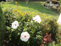 У отеля есть своя небольшая, но очень ухоженная территория с красивыми цветами и деревьями.