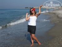 Пляж мне не понравился. Положительный момент - это близость пляжа к отелю. Но шезлонги всегда были грязные, половина сломаны, поэтому за 1,5 недели отдыха у меня так не возникло желания позагорать непосредственно на пляже. Приходили на море только искупаться. В воде очень много камней, отплыв от берега достаточно далеко, сильно ударила ногу о камень под водой и после этого плескалась только у берега.