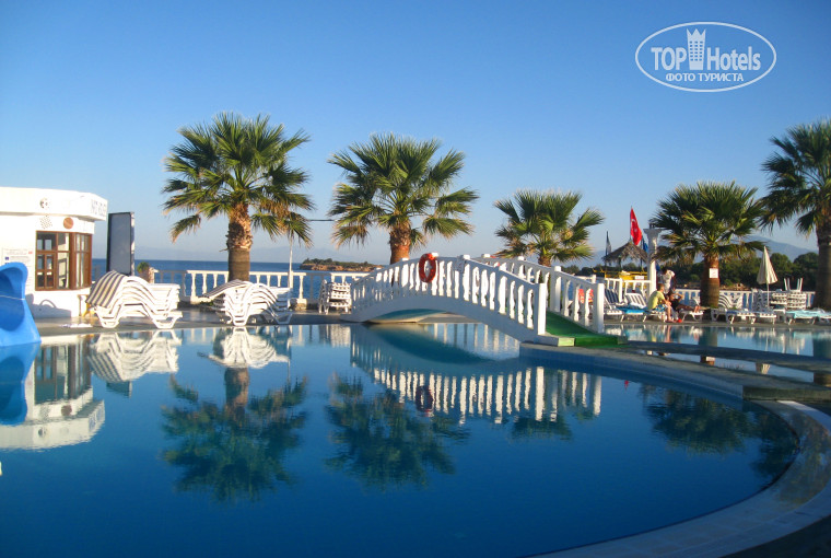 Отдыхали в сентябре 2012 г с мужем и 2 годовалой дочкой. Мы не особо привередливы к отелям, так как это всего лишь наш 2-ой отдых за границей, но все же сравнивать есть с чем, а потому в глаза бросились явные недостатки. Основной для меня - это грязная посуда. Первые дни, ослепленные радостью моря и солнца, мы этого не замечали. Но потом то и дело стали натыкаться на грязные тарелки и бокалы вина. Поскольку мы с ребенком вставали рано - завтрак всегда был теплым и всего хватало. Но зайдя однажды за печенькой для дочки в районе 10 часов, я наткнулась на пустые подносы и бедных отдыхающих, слоняющихся в поисках еды со словами ВСЕ СЪЕЛИ!!! Там еще типа есть поздний завтрак с 10 -11. Может, подносы бы пополнились....этого я уже не узнала. В общем, кто первый встал, того и тапки. Сразу скажу, что маленьким деткам там кушать абсолютно нечего , конечно, если вы кормите 2-годовалого ребенка хлопьями с молоком, жареным мясом и тому подобное, то вам не о чем переживать. Детского меню отель не предусматривает. Я понадеялась на Диетический стол, но все, что там подавали было абсолютно сырым. Например брокколи, которую моя малышка пока еще кушает с удовольствием, там была просто ошпарена кипятком...мы привыкли к хорошо проваренным овощам, а тут пришлось грызть эту капусту..я наткнулась на протест ребенка. Была безумно рада, когда дали тушеную картошку без приправ. А так выкручивалась, как могла. Взрослым там можно наесться до отвала. Есть вкусняшки на любой вкус. Алкоголь тоже нормуль. Канешн не дорогой вискарь и так далее...но пить можно...и в коктейли добавляют не натуральные соки, а типа Юппи...ну это вроде везде так...Второе нарекание - это пляж, который хотя и убирали частенько на моих глазах, но окурки и пробки от пива валялись везде. Переживала за малышку, бегающую босиком. Ну этот момент конечно еще и от отдыхающих зависит. А так территория красивая. Море очень мелкое. Сколько не иди, все по колено. Медузки были. У берега водоросли штормом прибивались. Вообще довольно ветрено. Я бы отелю поставила твердую 4. Еще раз повторюсь, я не привереда, но минусы отыскала. Есть вещи, на которые можно закрыть глаза, но грязнющий бокал, словно его вовсе не мыли, а дали мне после тети, державшей его жирными руками.....ну это наверно то, на что руководству отеля стоит обратить внимание. Персонал разный. Очень хорошо они к детям относятся все. Сюси-пуси и все такое. БАрмены не оч улыбчивые. В их глазах словно читается КОГДА Ж ВЫ УЖЕ ВСЕ НАПЬЕТЕСЬ??? А! И еще долго ехать от аэропорта. Вот.