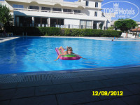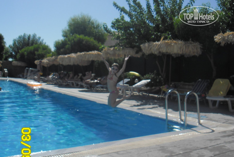 Территория красивая и зеленая. Два бассейна взрослый и детский 50 см. Есть волейбольная площадка. На ресепшене есть компьютер, им можно пользоваться, только неудобно, что клавиатура на английском)))) Есть вай-фай бесплатно. Хорошо ловит на ресепшне и у бассейна, в номере нет.