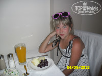 Еда мне тоже понравилась. На завтрак мне очень понравились булочки с очень вкусным медом, хлопья с молоком, омлет,чай, сок, молоко, дыни или виноград. Обед на улице. Ужин там же где и завтрак -в ресторане. вечером мороженое 4-х видов. В баре на улице тоже есть мороженое -только детям,взрослым -не дают