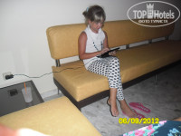 Автобус до отеля ехал почти 2 часа, я даже заснула, так как долго развозили людей в другие отели. Номер достался на первом этаже. Маме сначала не понравился, она думала насекомые будут, но менять можно было только на след.день и мы не поменяли. В номере 2 больших кровати для взрослых и одна поменьше, тумбочки, зеркало, шкаф, телевизор ( один русский канал "планета-ртр") и ванная.