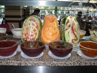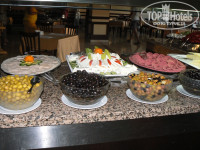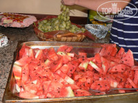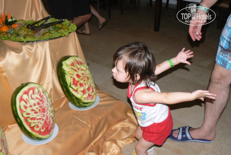 Питание. Питание очень разнообразное. Завтрак: сухие завтраки, которые можно разводить молоком, омлет, яичница, оладьи, картофель фри (он был всегда), овощи, зелень, сосиски в соусе (один раз попробовала, наши лучше), булочки, джемы, йогурты Из напитков чай, кофе, напитки типа соков, пепси, спрайт и .д На обед: Супы различные, курица, индейка в любом виде. Овощи, зелень, этого очень много, баклажаны в разном виде, рис, кстати очень вкусный, макароны, сладости и фрукты. Из фруктов в основном виноград, арбузы, пару раз яблоки давали и апельсины. На ужин один вид супа, и практически тоже самое что на обед, но очень много всего. Один раз куриный шашлык жарили на улице, было еще какое то мясо на гриле, но я не пробовала. Но на улице обычно занимали очередь, хотя она проходила быстро. Столики лучше занимать заранее или минут через 40 после начала, в общем-то об этом уже писали. Скажу сразу, детского меню там нет, но найти что то покушать для ребенка можно. Так что питание нам понравилось очень вкусно и разнообразно.