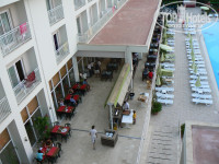 Добрый день. Отдыхали в этом отеле с 14 по 20 сентября. Ездили с тур-оператором Пегас и вообще в первые. Вылет задержали почти на час, это минус нашему Краснодарскому аэропорту. Прилетели в Анталию, там нас встретили и проводили в автобус. В автобусе гид очень много рассказывал о Турции, отвечал на все вопросы. В общем мы остались довольны трансфером. По приезду в отель, а это было уже 17 часов, нас сразу же заселили на 4 этаж (даже не 4, а мансарда). Брали мы 2 номера. В нашем номере уже стояла детская кроватка для младшенькой, двуспальная кровать и еще дополнительная кровать для старшей дочки. Номер чистый уютный, окна выходили на бассейн. У бабушки номер выходил на соседний отель и даже видно было кусочек моря. В номера все работало: кондиционер (кстати в нашем номере их было 2), телевизор, вода всегда шла исправно. В общем размещением довольны.