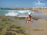 Пляж. На море в первые дн нашего пребывания были очень большие волны, сначала страшновато, потом вошли во вкус, оказалось что наш пляж самый суперский. Были на пляже в соседних отелях, в Корал бей, там волнорезы и море спокойное, но качаться на волнах на нашем пляже было куда интересней. Кстати, чтобы не напороться на плиту в море нужно заходить напротив таблички с надписью "Купание опасно"