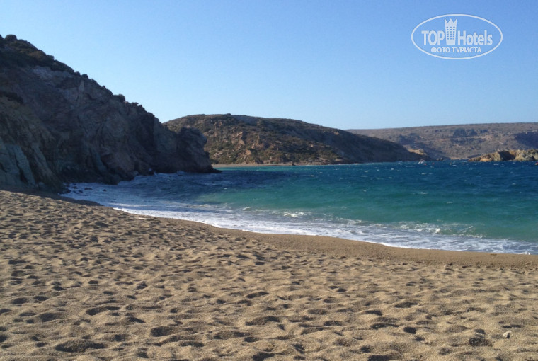 На пляже возле отеля мы купались только один раз - в первый день, а так останавливались на различных пляжах. Одним из любимых нами пляжей стал пляж Алмирос, 20 минут от отеля рядом с Агиос Николаас, песочный пляж, чистеешее море. Кстати, он отмечен флагом Юнеско, каа самый чистый пляж. Таких пляжей в Греции очень много.