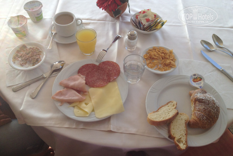 Но придя в ресторан мы разочаровались, так как завтрак это: два вида колбасы, сыр, круассаны (те, которыми так заманчиво пахло), яицы, хлопья, джем, масло и йогурты. Это ВСЕ! Первый, второй, третий день вы кушаете и радуетесь, на пятый день начинает надоедать, на 10й мы даже не пошли на завтрак. Он просто надоел! Никакой тебе элементарной каши, яичницы или свежих овощей. Даже кофе и то растворимое в термосе (!!!) пойло.
