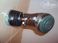 На сайтах отсутствуют фотографии санузла. Связано это с тем, что в реальности душ как будто на даче. Душ представляет собой только смеситель, и полное отсутствие шланга от смесителя. Керамическая плитка в санузле в ужасном состоянии, ПОЛНОСТЬЮ не соответствует рекламной надписи, что отель 2007 года строительства. Потому что номера в ужасном состоянии. Полное отсутствие банных принадлежностей (гель для душа, жидкое мыло, шампунь). Мебель в номерах старая, обшарпанная.