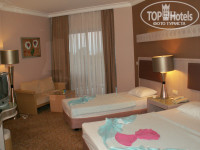Заселение и номер: приехали около обеда, заселили довольно быстро (ждали м.б. минут сорок) и без доплат. Номер на 4 этаже, вид на соседний отель Дельфин Ботаник, справа Море!,слева дорога. Спали с открытым балконом, т.к.с кондиционерами проблема (типа у них уже зима и охлаждать не нужно)))). Конечно, шум от дороги ночью был, и даже русская анимация из Ботаника вечером, но ребенок спал и это было главное))) В сезон, думаю, с кондеями все в норме и шум от дороги с закрытым балконом минимальный. Сам номер с двумя кроватями (двуспальная и полуторка), сразу предложили еще детскую, но мы отказались. Убирались каждый день, полотенца меняли, шампуни-гели приносили, мини-бар пополняли. По поводу комаров: появились уже под конец отдыха, когда ночи прохладнее стали, ну, может штуки 3-4 видела, но, начитавшись отзывов, брала фумигатор и включала)))