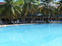 Номер большой и уютный, мебелюшка немного потрепанная , но это не омрачило общего впечатления, муравьишки иногда попадаются, но это если вы только сами оставите следы какого-нибудь сладенького сиропчика. Кондиционер попервой, как нам показалось, морозил так, что в пору было одевать свитера, но как только мы прогрелись под Кубинским солнышком, до нас дошло, что именно такой режим его работы и будет для нас самым благоприятным. При заселении обнаружили одну не работающую лампочку, и холодильник не очень то морозил. На утро поболтав о проблеме на ресепшене и заручившись обещанием, что кто-нибудь все исправит, провели чудесный день на пляже и в исследовании территории отеля и города, но в этот день проблемка к сожалению не устранилась. На следующий день была запланирована экскурсия в Гавану (очень понравилась) и поэтому перед выходом из номера, собрав все свои знания (маленькие) инглиша, оставили записочку с просьбой исправить все то, что хотелось бы, для убедительности приложив 1 песо (CUC). По возвращении с экскурса - все что нужно горело и все что хотелось морозило как надо! На балкончике номера, с видом на зеленую лужайку и бассейн, а также на пару пальмочек с неизвестными красными плодами, два креслица и столик, где можно приятно провести время после всяческих развлечений, купаний , экскурсий и трапез. Так что в целом впечатление от места проживания очень положительные.