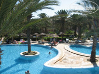 ЗДРАВСТВУЙТЕ!ХОЧУ ПОДЕЛИТЬСЯ СВОИМ ОТЗЫВОМ ОБ ОТЕЛЕ И ПРЕКРАСНЫМ ОТДЫХОМ В ТУНИСЕ...Мы с подругой приехали в отель только 9 вечера по местному времени Туниса ужасно уставшие с самолета.Мы сразу пошли на рецепшн нас встретил доброжелательный персонал и определили нам номер на третьем этаже ,конечно пока ты добираешься до этого номера можно устать ,там такие лабиринты что можно запутаться!У нас должен быть номер с видом на море ,но номер оказался совсем не с видом на море а на бассейн ,а море видно было из-за пальм...Нас устроил и наш номер который дали ,он был чистый и уютный.Правда шкаф был не очень ,вешалок для вещей было мало .Удивило то что по телику был русский один канал ,хотя мы приехали отдыхать а не телик смотреть !!!Каждую ночь у нас приходила ящерица ,сидела у двери на стене ,очень милая и смирная))))) Территория отеля была просто чудесна особенно с утра выходишь с номера по винтовой лестнице и сразу попадаешь на бассейны и ресторан где обычно проходили завтраки,обеды и ужины .Кругом пальмы ,газон шикарный до моря буквально 100 метров ,море с утра грязное потому что водоросли у берега были но все это прибирали каждый день.По сравнению с другими отелями и пляжами у нашего отеля был самый лучший пляж .Тем более с утра мы ходили на море,после обеда в бассейны на всякие развлечения с аниматорами ,а потом в аквапарк такое чувство что день вообще не кончался тянулся как резина ..
