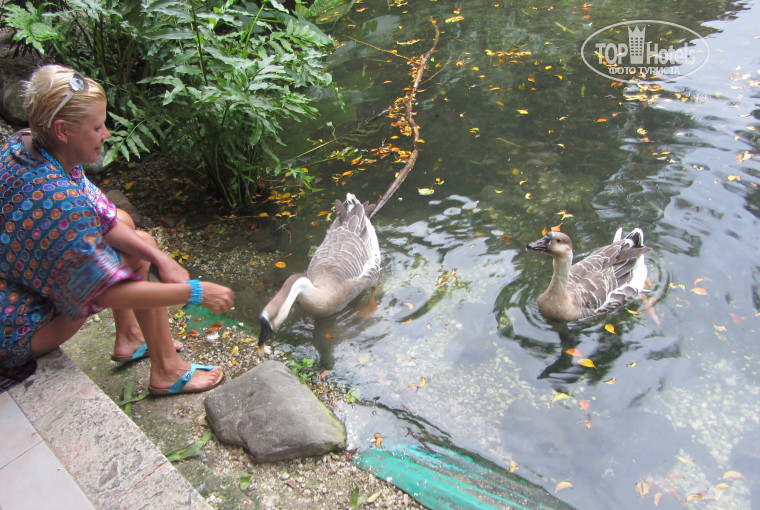Территория прекрасная!!!! Компактная, связанная с природой во всех ее прелестях. Животный и растительный мир окутывает со всех сторон. Если хотите насладиться кормлением всей живности и увидеть их прожорливость начинайте до собственной трапезы, дабы застать их голодными. Еще рекомендую выйти за рецепшен на мостик и увидеть настоящее шоу черепашек. Они , заслышав, присутствие туристов с кормежкой, появляются из недр глубинных в большом количестве. Еще на диком пляже вы можете увидеть , как рыбачат пеликаны. Можно случайно попасть , пройдя по пляжу вправо в дельфинарий. Просто каждое утро туда ходят иностранцы из соседнего отеля. И если вам посчастливится, вы свой браслетик срываете медленным движением руки...........И-о чудо, вы совершенно бесплатно наблюдаете и фоткаете этих очаровашек. Там еще есть акулы, скаты и прочая живность. Правда лучше прикинуться иностранцем.