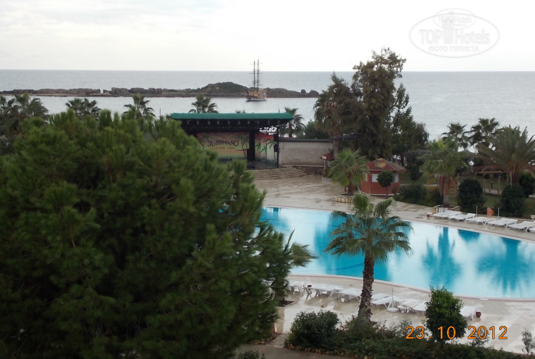 Отдыхали с семьей с 17 по 28 октября. До этого отдыхали в Египте в отелях, где хозяевами были турки, поэтому было с чем сравнивать. Поселили за чаевые в хорошие номера с видом на море , большое спасибо за это. Питание немного лучше чем в Египте, голодными не ходили. Спиртное хорошего качества и наливают от души. Не понравилось, что постельное за 12 дней поменяли всего 2 раза и два раза полотенца, хотя земляки с соседнего корпуса рассказывали, что у них меняют чуть ли не каждый день. Оставляли чаевые - ничего не менялось. Еще один минус- это мухи в ресторане, наверное из-за того,что на территории отеля есть минизоопарк, который ну очень плохо пахнет ( в Египте на территории отелей от мух везде висят ловушки ). На день рождения ребенка получили фрукты и бутылку вина в номер, в ресторане нам красиво засервировали стол, за что большое спасибо, было приятно. Официанты приветливые, за чаевые готовы не отходить от тебя. Особая благодарность официантке Гюльсум - очень приветливая и приятная девушка, а так же администратору главного ресторана. Еще что удивило, что пляжные полотенца менються три раза в неделю в определенные часы, впервые с таким столкнулись. Анимация понравилась, жаль что они в полном составе работают только до 15 октября, далее развлечения есть, но немного. В целом впечатление хорошее. Солнце, пляж с чистым теплым морем 22-24 градуса ,хороший бассейн, много еды (особенно лепешки гезлеме - это супер!), спиртное хорошего качества, все что нужно для хорошего отдыха. Лично мое мнение, по пятибальной системе отель заслуживат на твердую четыре, Идеальное сочетание цены и качества.