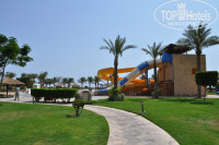 Территория отеля большая, зеленая и ухоженная. На территории есть 3 водные горки для детей.