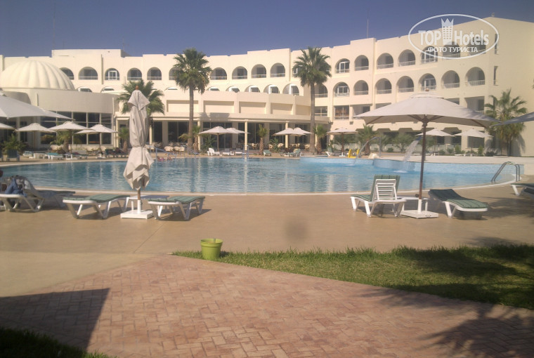 Питание в отеле достаточное. Чувства голода не появилось за все время отдыха ни разу. Назвать его очень вкусным мне не позволяет моя родная украинская кухня к которой я привык. Колбаски и сосиски сравнимы с нашими самыми дешевыми. Свинины ясное дело нет. Курятина на обед и ужин в разных видах постоянно, рыба не вкусная, говядина бывала, никого не оставят равнодушными их пироженые и тортики, фрукты есть в небольшом ассортименте. Открою секрет для мясоедов. Самое вкусное мясо находится в самом дальнем углу от входа по диагонали. Расчет на то что вы просто не дойдете туда из-за полных тарелок.)) Оно не на общем подносе, а в чем-то закрытом типа большой утятницы и рядом с ним всегда работник кухни дабы отрезать по вашему желанию кусочек. Там бывали и языки,и индюшатина и прочая мясная вкуснятина. Над каждым блюдом табличка с надписью на англ. и русском. На русском можно встретить не корректный перевод. ) Ну если над корнишонами надпись «огурцы оказалось» не очень сильно введут в заблужение. То над бульеном надпись «соль нюхательная» меня в первый раз озадачила. Работник ресторана объяснил что это не розыгрыш, просто русский перевод делали через компьютерный онлайн переводчик, от туда и неточности. Согласился со мной что смешно, но надпись так и не заменил. )) В первый день за обедом мной была найдена в дырочке от хвостика в инжире волосина. Все бы ничего но по размещению она сама так туда попасть не могла. Менеджер столовой на это отреагировал спокойно. Аппетит подпортился конечно, но на этот счет заморачиваться не стал. Ведь приехал отдыхать а не ругаться. Еще не понравилась такая новость что выносить продукты за территорию столовой нельзя. На выходе от туда меня встретила менеджер отеля и сказала о том что в сам отель из столовой я не могу вынести персик что был у меня в руке. Тут кушай, туда нельзя. И к бассейну тоже нельзя. У бассейна работает кафе, еще одно расположено лицом к морю. Почему при наличии продуктов оно не работало я так и не понял. Тот что у бассейна, иногда делает блинчики, примерно около 3х дня, но не каждый день. Всегда там есть вода, пиво, кола, и напитки ЮПИ в ассортименте. Пиво по словам местных аборигенов лучшее в Тунисе, но на наш вкус совсем не то. В том кафе что на территории отеля работает ночью, те-же юпи, кола, спрайт и коктейли на их основе с местной водкой под названием буха. )) Бодяга та еше, наша водка просто райский эликсир против нее. Хотя можно купить и виски или ром, но европейский алкоголь платный. Молодых жен в откровенных платьях самостоятельно на швецкий стол не отпускайте. На кухне работают молодые тунисцы. От такого вида выпрыгивают из штанов и отвешивают все камплиманы что изучили на русском или английском. Подобные случаи бывали с моей, пока я где нибудь задерживался. Жаль что при мне никто ничего не вякнул. ))