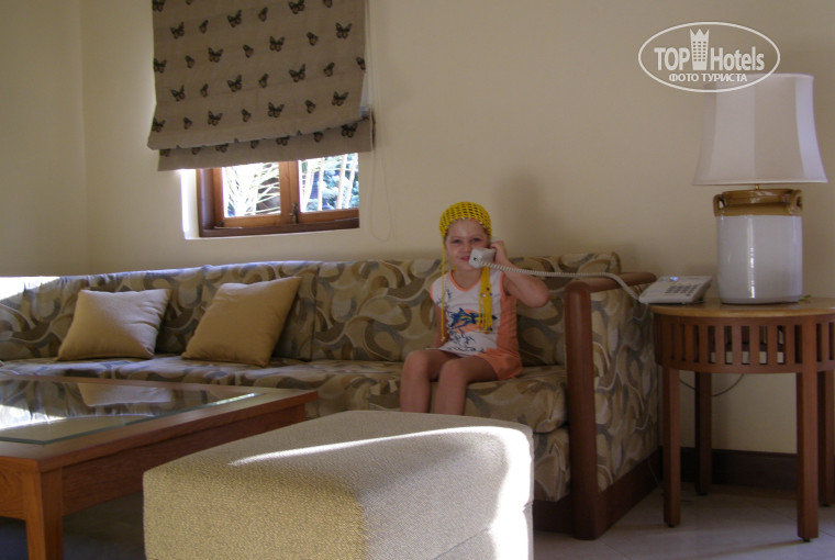 Номера очень хорошие, было все необходимое и даже больше (стиральная машинка, утюг, гладильная доска, тостер, микроволновая печь, плита, посуда, блендер, халаты и пр…). В ванной кроме куска мыла ничего не было, когда мыло закончилось, принесли еще один кусок… Часть номеров была двухэтажными… У каждого номера либо балкон, либо терраса, либо то и другое… По приезду было все чисто, но вот, к сожалению убирались в номерах не часто, за все время один раз поменяли постельное белье и два раза поменяли полотенца…
