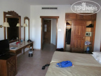 Наш номер был очень просторный с балкончиком. Вид из номера на садик и декоративный бассейн. У некоторых соотечественников вид был на ресторан соседнего отеля. Насколько мы поняли русских и итальянцев селят в разных номерах. Лучше когда номер на втором этаже. На первом нужно окно зашторивать. Большой шкаф. Два больших зеркала- над столом и рядом в полный рост. Сейф с кодовым шестизначным. замком. Кондиционер. В телевизоре 30 каналов. 2 на русском. 2 без звука :) 2 одноместные кровати, которые нам без проблем сдвинули рядом. Маленькие недочёты- номер выглядел потёртым и ручка в ящике для обуви отломана, сантехника и кондиционер немного шумят. Зато очень чисто и уютно. Пол тёплый ( но не подогреваемый) каменный.