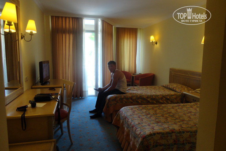 Разместили нас не очень быстро. По правилам отеля размещение происходит в 14:00. Мы это знали, но мне не понравилось то, что наш туроператор Пальма Эксклюзив отдав заполненные наши анкеты не однократно подходил и спрашивал можем ли мы заселится или нет и не получал никакого ответа. До тех пор пока я сама не подошла и настойчиво не спросила о нашем номере только после этого нас зарегистрировали и отдали ключи. В 14:00 мы заселились.