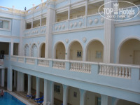 Сам отель очень красивый. При внешних 2-х этажах в нем реально 4. На крыше есть бассейны, бары, массажные. А ресторан с еще одним бассейном и комнатами находятся на -1-м этаже. Лестница – это украшение отеля. Кстати все те колоннады, магазинчики и кафешки – это фактически все территория Iberotel, куда имеют доступ и другие туристы.