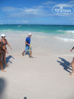 На ресепшн персонал (доминиканцы), говорящий на нескольких языках( испанский, английский, немецкий, французский и немного русском). Будучи туристами от русского туроператора нас начинает обслуживать молодой человек на русском (если не ошибаюсь, то имя на бейджеке было Julian Jo), что произносится, как Хулиан. Показывает нам карту и говорит, что мол, смотрите, это территория отеля и тут вы будете жить, тыча в самый отдаленный угол территории отеля. Тут стоит отметить, что мы выбрали и заплатили в Москве за улучшеный номер, так называемый DeLuxe, по их системе комнат. Т.е априори мы не могли жить, так сказать, "у пром.зоны". Комната предполагалась быть рядом с морем. и он, не моргая, говорит, что это и есть делюкс номера там ( что, без сомнения, бред чистой воды). Тут видя мой пока только изумленный взгляд и поворот головы в сторону мужа, тут же говорит, что если мы хотим жить где-то поближе к морю, то он может быть так любезен и узнать у своего босса, возможно ли это сделать, доплатив немного( чаевыми). Мы, пока не проронив ни слова, наблюдаем за его действиями, как пытаются развести русского туриста на лоха. Приняв молчание за знак согласия, он набирает телефон и начинает на испанском обсуждать с "боссом", делая вид, что пытается "сделать все в лучшем виде". Говорит, мы можем сейчас вам предложить комнату за типсы( чаевые) в здании 4000, 3000, 2000( все находятся рядом с морем). Будете смотреть? Я, из чистого любопытства, понимаю, что никаких денег он от нас не дождется по причине абсолютного развода, говорю, да. Пойдем смотреть. Нас ведет тот, кто развозит чемоданы( белбой). посмотрели 3 номера в этих трех зданиях. абсолютно идентичные,просторные с большими кроватями, с той лишь разницей, что в каком- то номере джакузи в ванной, в каком-то та же джакузи но в самом номере рядом с кроватью( что нам показалась совсем дурацкой идеей). Внутри все идентично, вплоть до цвета стен и т.д.