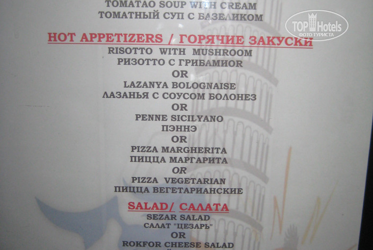 Аля карт рестораны: обязательно попробуйте, очень вкусное горячие в Итальянском ресторане (Запеченное говяжье филе с розмарином)