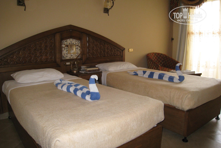 2. Номер. Путевку сразу брали с улучшенным номером Superior. Он оказался просторным, с окном-балконной_дверью во всю высоту. На балкончике столик и 2 стульчика. Прямо с балкона есть выход к бассейну (у нас был 1эт). В номере есть сейф, холодильник, фен. Удобная душевая. Стиль восточный, но не вычурный - тоже плюс.