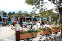 Были большой семейной компанией в конце апреля начале мая, всем очень понравилось.Отель уютный и семейный.По вечерам и ночам молодежью тусили на отельной дискотеке на берегу моря.Всё было круто!!!!Тк было открытие сезона, народу в отели было мало,уезжали-народу прибавилось значительно.Номера на первых этажах были сыроваты.Погода была хорошая, море прохладное,но мы иногда купались.Ездили на экскурсии: на рафтинг, в горы на фуникулере. Недалеко от отеля торговая улочка,нашли продавца,который делал нам хорошие скидки на все.( отличное постельное, полатенца,махровые халаты и прочее..)Были с нами маленькие дети,они тоже были довольны всем.Рекомендую!!! и цена была бюджетная в это период времени. Были туристы,которые не первый раз в этом отели, я их понимаю,тк хотим снова семьей туда жеП съездить.