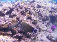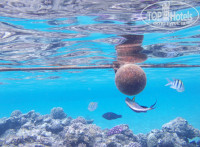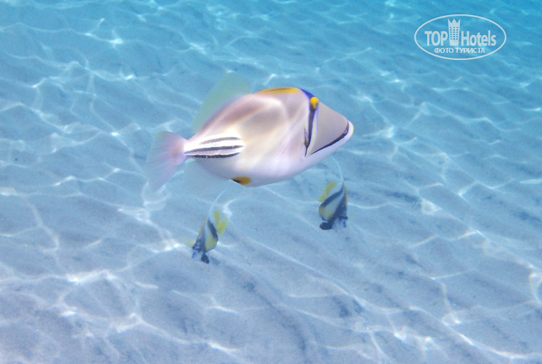 Пляж. Отличный просто!!!!! Ну о нем все пишут, он правда хороший! Качественные монументальные широкие зонты. На достаточном расстоянии друг от друга. Это комфортно. Песок чистый, мелкий. Заход в море пологий, мягкий, без камней. Для детей вообще то, что надо. Бухта не большая. По берегу погулять можно, но особенно не разгуляешься. Есть не большие рифы, там полно всякой симпатичной красочной рыбешки. Она практически ручная, пытались снимать подводной камерой. Так рыба вокруг этой камеры крутится, моськой стучится. Здорово!