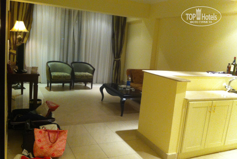В целом отель понравился, заселили шустро, не в главный корпус, но в сьюит, браслет одевают быстро, идешь ешь, а потом разбираешься с номером, служба ресепшена работает отлично,денег за заселение можно не давать но мы дали 20$ за то что нам дали номер на класс выше, мы жили в 5 корпусе напротив макдональдса на втором этаже, но нам это было удобно, единственное когда у арабов выходной приготовьтесь к детским воплям под окном, еда отличная пару дней не понравилась еда, но я слишком капризна и мне трудно угодить, а так был вечер мексиканской кухни, итальянской, морепродуктов и еще разные ужины, мороженое дают вкусное каждый день. Русских в отеле почти нет, анимация не понравилась, но я не фанат общих игр и развлечений, детей в отеле 2-3 от силы, они не беспокоят вообще, два бассейна на крыше, очень красивые, правда теплый окупировала анимация и постоянно там играет в водное поло, но я не из скромных влезла в бассеин когда они играли и плавала по краю, никто мячом не убил. Сказать что это вторая линия от моря не получается, это скорее третья линия, пляж песчаный так себе грязная мутная вода и буйки, рифовый страшноватый, там резкий обрыв и ступеньки по которым нужно спускаться в воде, можно шею сломать. Мы на нашем плаже не сидели ездили на шикарнейший пляж фарша, там кафе и пляж он два в одном и рифовый и песчаный сначало песчаный а потом рифовый, от него были в диком восторге, там и фотографии шикарные получились, единственное он платный. Терразина пляж тоже неплохой, там кафе и диваны. можно загорать прямо на них попивая коктейль. Отель этот выбрали из-за удобного месторасположения, так как мы не сидели в отеле вообще, старый рынок недалеко можно пешком дойти, тач махал недалеко, наама бей тоже не так уж далеко но до нее пешком не дойдешь надо ехать. Гид корала ужасен он орет обижается то, что не берешь экскурсии, мы с ним поругались, в итоге за нами вовремя не приехал автобус, в аэропорт мы ехали на такси, но служба отеля не виноваты, это косяк корала, в отеле нам упаковали чемоданы в пленку, были любезны. Мы ездили на множество экскурсий на рас мухамед на машине , так удобней ездили днем 5 человек с гидом, были в городе Эль Тур, это чисто арабский город, не курортный, люди английский не понимают, там недалеко на источнике тоже были, типа оазис, мото сафари не очень понравилось, на яхте Wassila Катались, очень хорошая экскурсия, загорели отлично, натанцевались видели дельфинов, девочка русккая подозвала дельфинов и они прыгали у яхты, еще брали катер на нем черепаху видели на море. Отелем остались очень довольны, поедем именно в него еще не раз