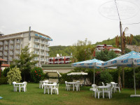 Еще радовало то что самое главное море через дорогу,пирс и бар на пляже,(очень удобно что есть пирс)весь персонал очень вежливый))Наш балкон выходил прямо на бассейн и море,все очень красиво)))также были и номера с видом на горы(очень классно),и еще вдоль отеля очень красивые цветы во весь рост,когда идешь на море ,ощущаешь запах этих роз,и запах соленого моря)))есть место где можно погулять,также и анимация не давала скучать каждый день концерты,дискотеки,конкурсы))
