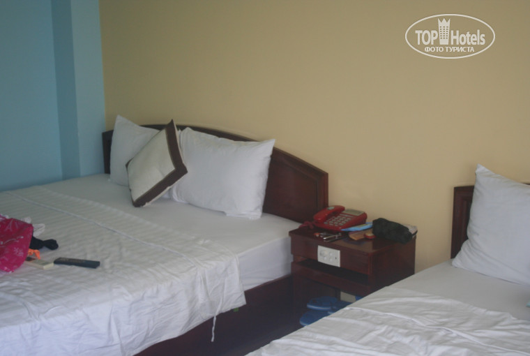 Улетая в сказочный Вьетнам, начиталась много негативных отзывов об отелях, поэтому непременно решила написать свой собственный по прилёту. Отель 3 звезды, полностью соответствует заявленному описанию. Небольшой минус - размещение после 14.00, а мы прилетели в 9 утра. Но,ничего страшного,погуляли по городу,искупались, багаж заперли в комнате. Отель расположен в 4 минутах от моря, в европейском квартале, много русских тур-агентств, мы все экскурсии покупали в "Москва", подороже ,чем в "Вова-Тур",но качественно и без обмана. у "Пегаса" экскурсии в 2 раза дороже! На рецепшене в отеле говорили по английски, плохо,конечно, но объясниться можно всегда, главное, говорить понятно и отдельными словами, не нагромождая предложения грамматикой. Номер чистый, белье и полотенца меняли каждый день, воровства не замечали. В номерах в шкафу есть сейф, придумываешь свой код и пользуешься. Горячая вода всегда была, сантехника в ванной новая. Завтраки были вкусные и разнообразные, много фруктов, национальные блюда, картошка фри,овощи,супы,омлеты,сок,кофе. Кофе-это отдельная тема, пожалуй, во Вьетнам стоит поехать, только чтобы попробовать их кофе! Обычно пьют его ледяным и с молоком и сахаром! Просто волшебно! Рядом с отелем был ларек с фрэшами, за сущие копейки мы каждый день получали по пол литра свежего сока! Много кафешек рядом, из недорогих Breeze, но долго готовят блюда, зато порции огромные! Des Ames тоже недорогое,вкусно готовят,огромное меню. Из дорогих шикарное место на пляже - Луизиана, со своей пивоварней, отмечали там 14 февраля, потратили на двоих 2млн.донгов(100 баксов), но в Москве на такие деньги вы не поужинаете на двоих, пили мартини, пиво. В отеле внизу был компьютер с интернетом,но wi-fi медленный, в номерах особенно. из минусов отеля, он городской, без бассейна, но это в Нячанге норма. Шумно, окна не пластиковые, и у нас выходили на стройку, раньше вид был на море, но потом напротив стали очередной отель возводить. Иногда от дрели просыпались в 7 утра, но в основном нас это не смущало. Так что у отелю претензий не имеем! Теряли сумку от фотоаппарата, вернули! Сотовый в номере забыла в последний день - вернули! Помогали на рецепшене активировать местную симку и карты оплаты. Есть возможность стирки и глажки за совершенно небольшие деньги! Есть мини-бар, все стоит почти как в магазине! Телевизор с первым каналом))). Кондиционер работал хорошо. В Нячанге огромное множество развлечений и если вам предлагают поехать за небольшую сумму в этот отель,соглашайтесь,не раздумывая. Вы будете там только мыться и ночевать, очень много экскурсий, развлечений, великолепный пляж и море, поэтому на самом деле отель не так уж и важен!
