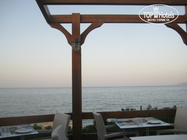В очень живописном месте стоят обеденные столики- на скале прямо у моря - красотища!!! Особенно на закате.... Сидишь ужинаешь, а прям под тобой море плещется и солнце садится...Если ехать парой, то очень романтично... Можно даже попросить, чтобы поставили отдельный столик на скале для романтИка со свечами и цветами.. ( по-моему, идеальное место для предложения...))