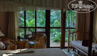 Территория отеля великолепна: зеленая, тихая, уютная. Пляж с чистым белым песком. Когда мы заселялись, нам предложили самое ближнее к ресепшен бунгало. Мы попросили более тихое место, нам поменяли номер без проблем. Передняя часть бунгало полностью стеклянная, если открыть шторы, возникает ощущение единения с природой.