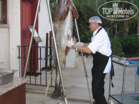 За 10 дней три раза жарили тунца(я и не предполагала что он такой огромный),жарили при нас-выбирай сам любой кусочек.В общем питание на любой вкус.